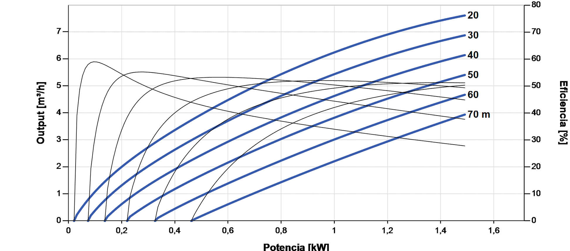 | Caudal / Altura máx. | 7,6 m³/h / 70 m |