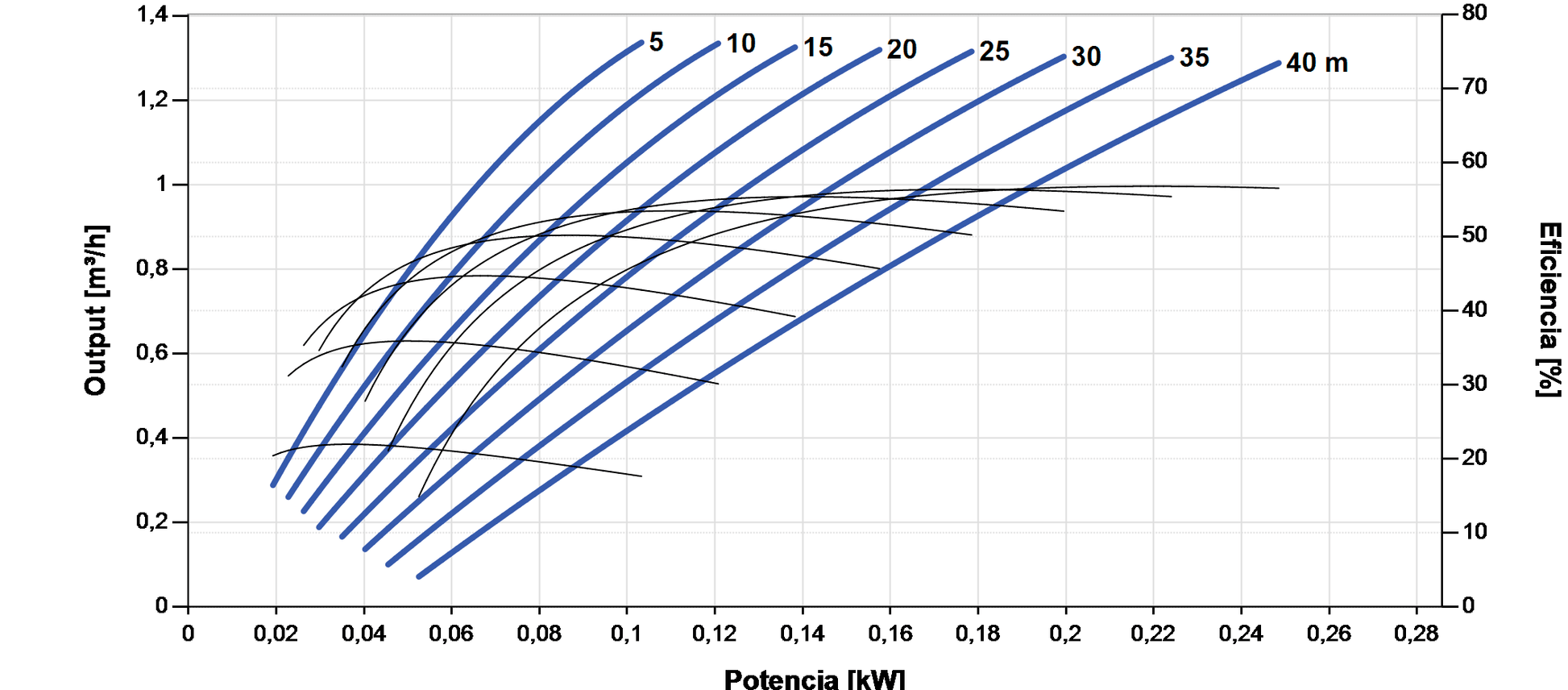 - Caudal/altura: 1,3 m³/h y 40 m, ideal para depósitos, riego por goteo y suministro doméstico.