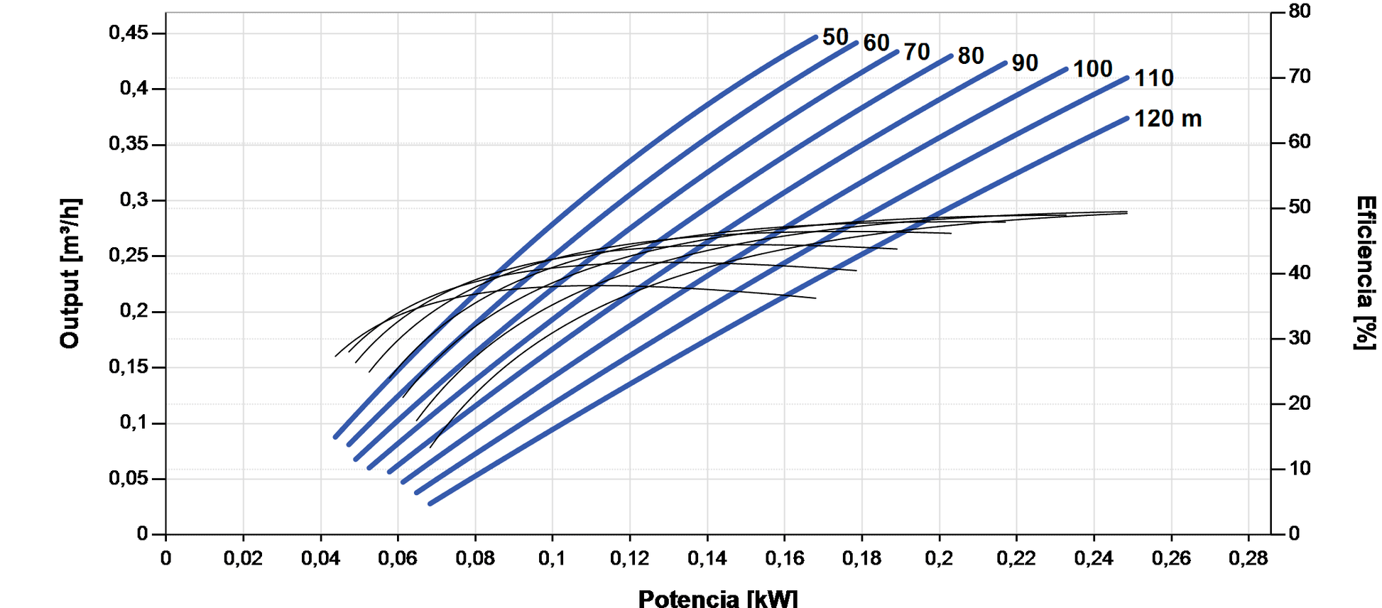 | Altura / Caudal de referencia | 100 m / 0,5 m³/h |