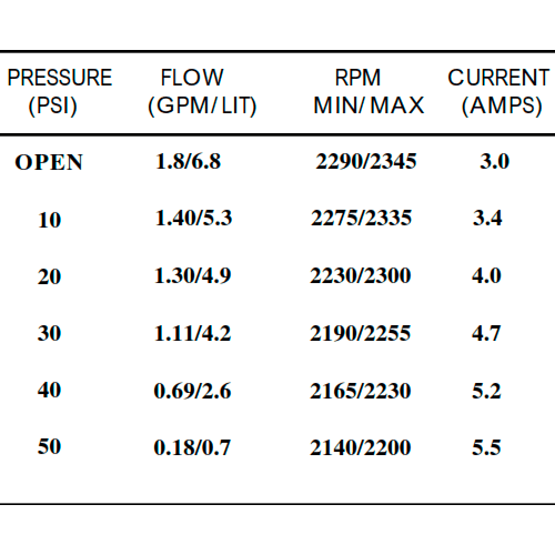 - Caudal nominal: 6,8 l/min en abierto; operación estable con boquillas a 30–50 PSI.